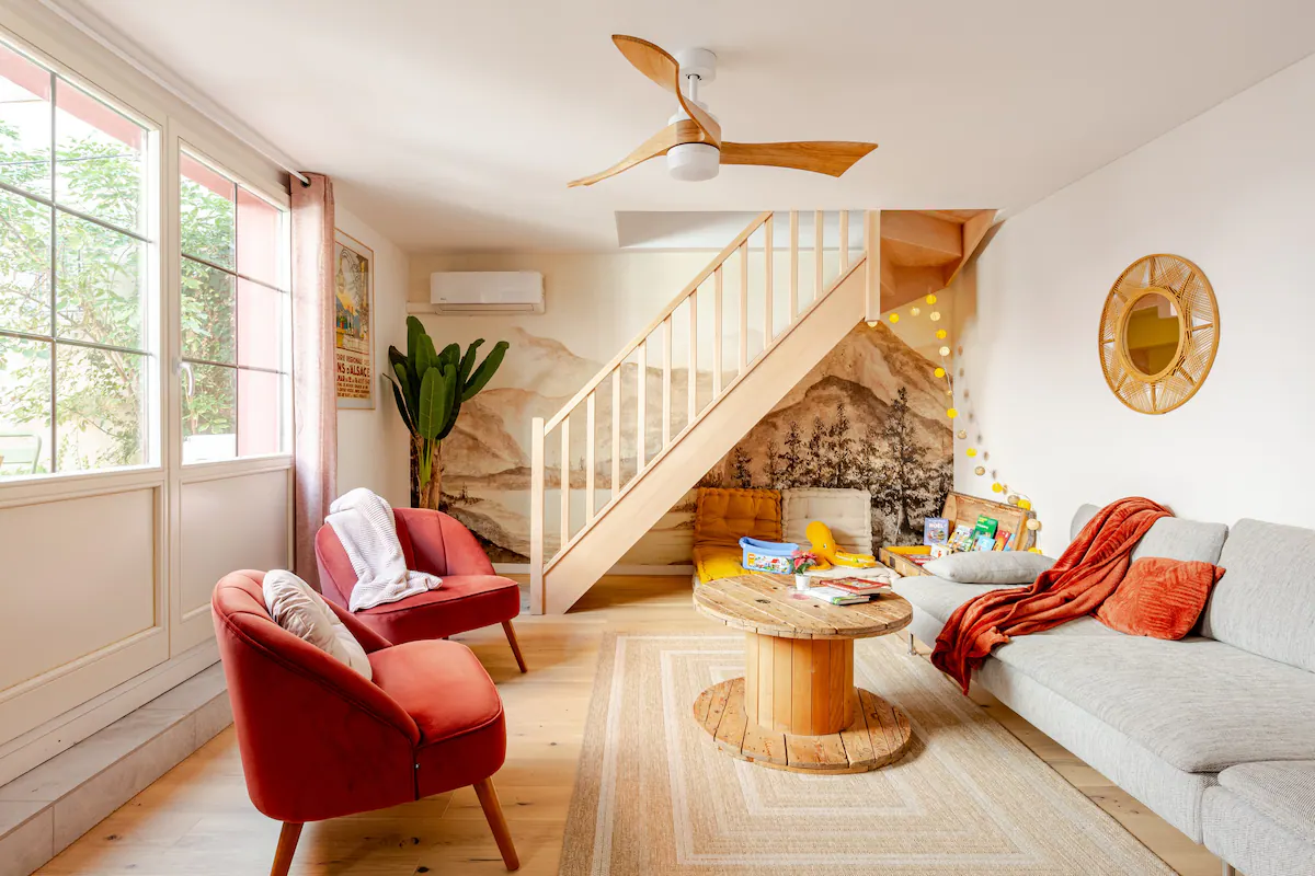 Le Roots est une maison de ville en duplex. Avec sa pièce de vie spacieuse, elle est parfaite pour accueillir des familles ou groupes d’amis. Les enfants y ont même un coin dédié avec des jeux et des livres. Le plus : une cour intérieure où l’on peut se prélasser et stocker les vélos. L’emplacement de la maison est idéal pour se déplacer dans toute l’Alsace.
