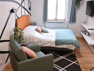Le studio Pep’s, situé en rez-de-chaussée, peut accueillir deux personnes et un bébé. Fonctionnel et cosy, il offre tout le confort nécessaire. Son emplacement en plein centre de Sélestat permet un accès facile à pied aux commerces et restaurants. Les voyageurs peuvent profiter d’une cour intérieure, parfaite pour se détendre et ranger les vélos en toute sécurité. Cet hébergement constitue un point de départ idéal pour explorer l’Alsace.