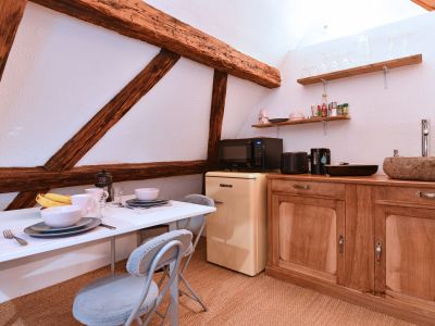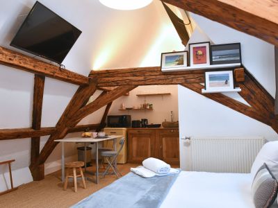 • Les poutres apparentes sont basses et la douche est petite, le studio ne convient donc pas aux grands adultes !