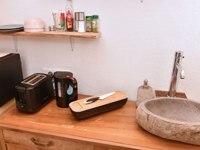 La cuisine est équipée uniquement d’un four à micro-onde, il n’est pas possible de cuisiner.