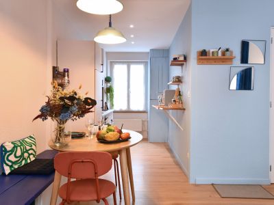 Le studio Wood, en rez-de-chaussée, offre un espace pouvant accueillir jusqu’à trois personnes. Idéalement situé en centre-ville, il permet un accès direct aux commerces et restaurants. Les voyageurs peuvent profiter d’une cour intérieure, parfaite pour se détendre et ranger les vélos en toute sécurité. Grâce à son emplacement central, cet hébergement constitue un excellent point de départ pour explorer l’Alsace.