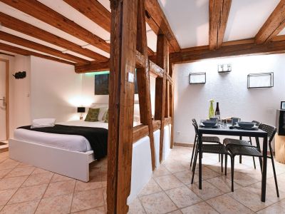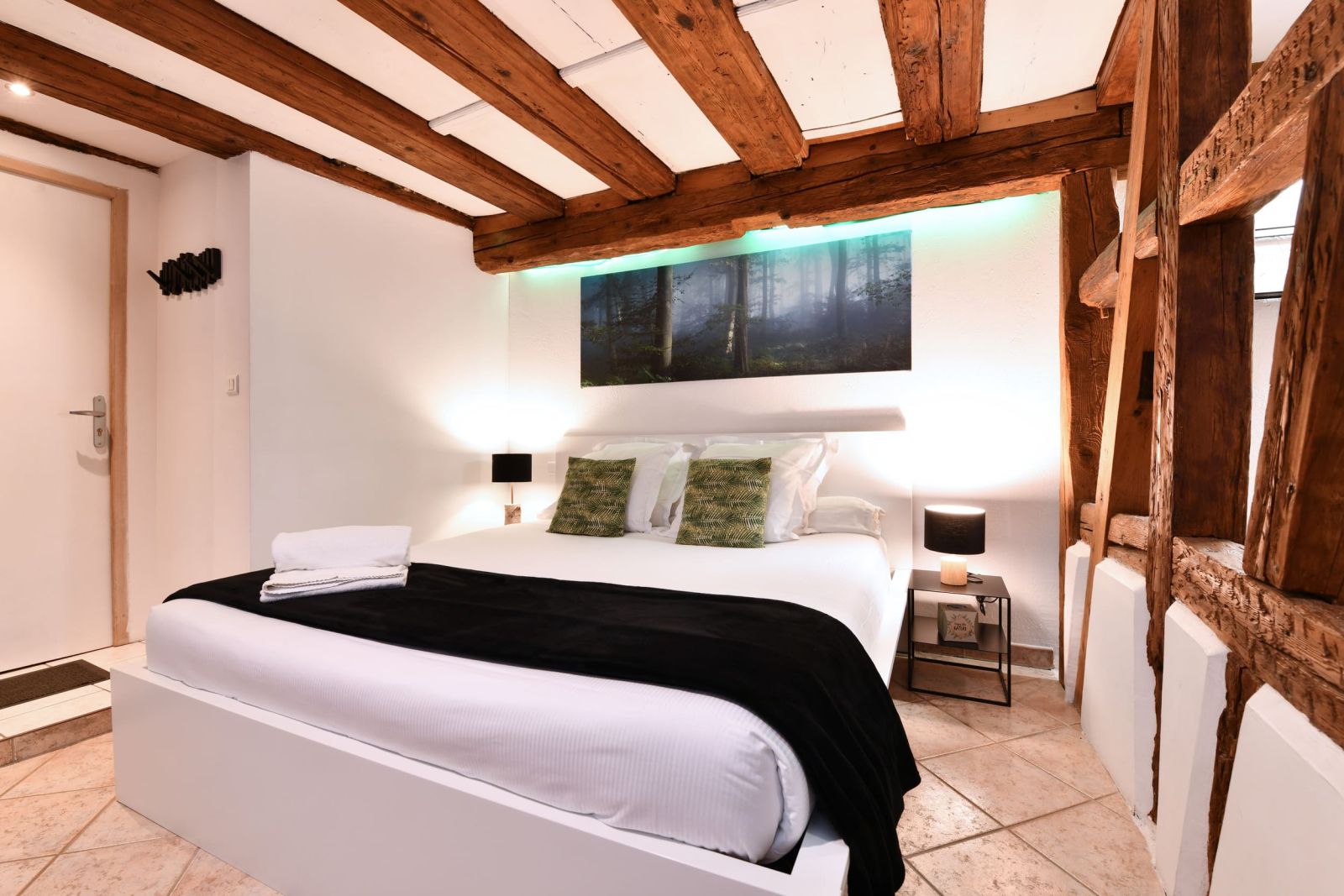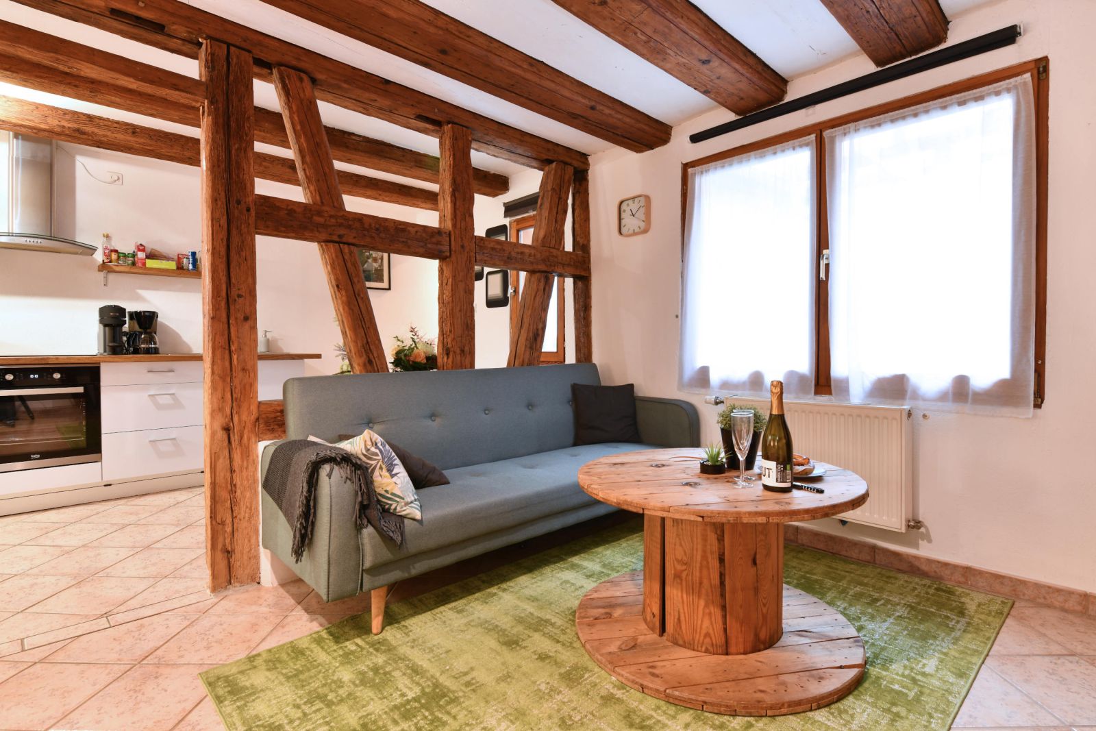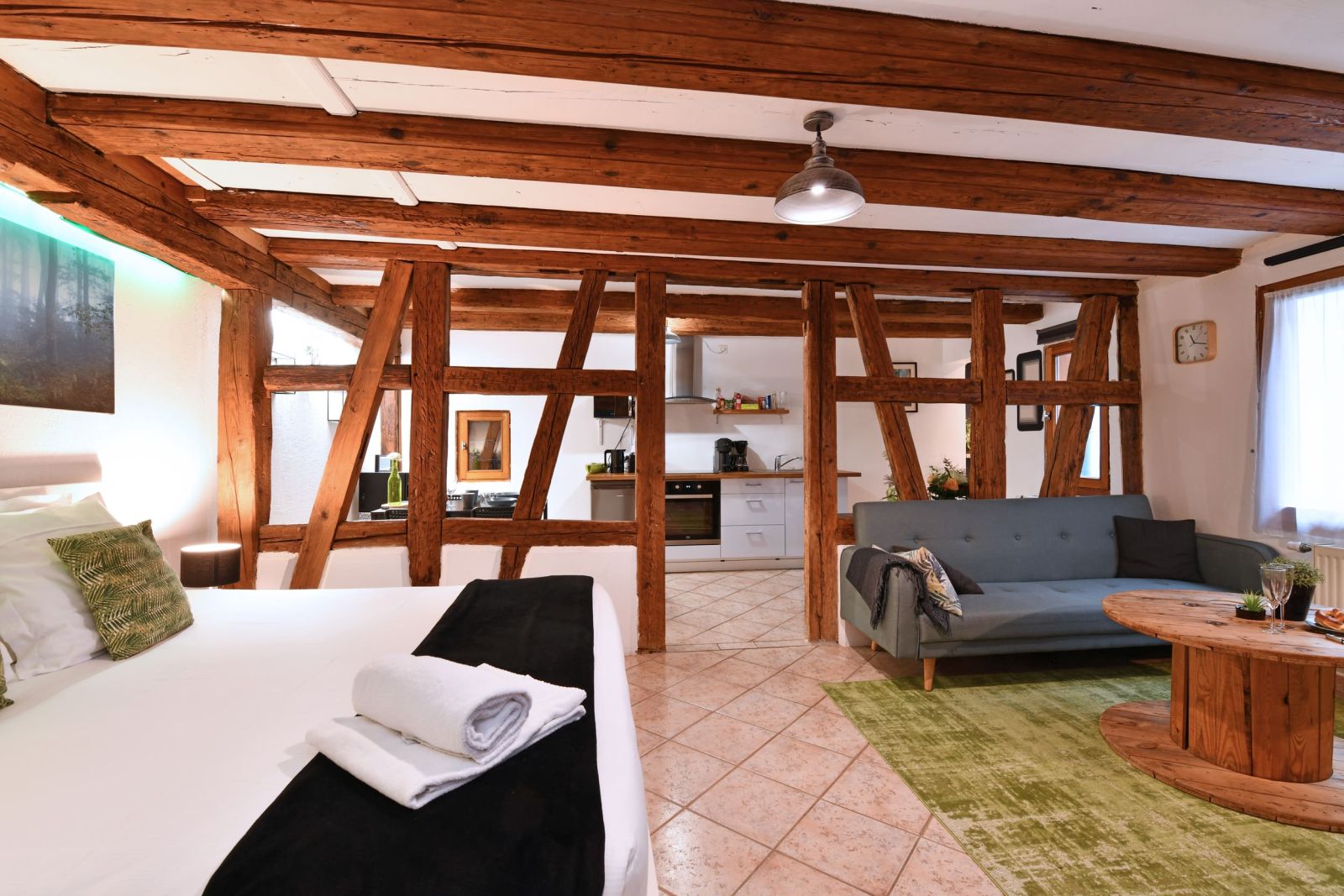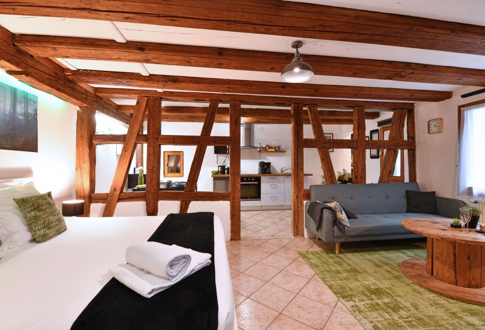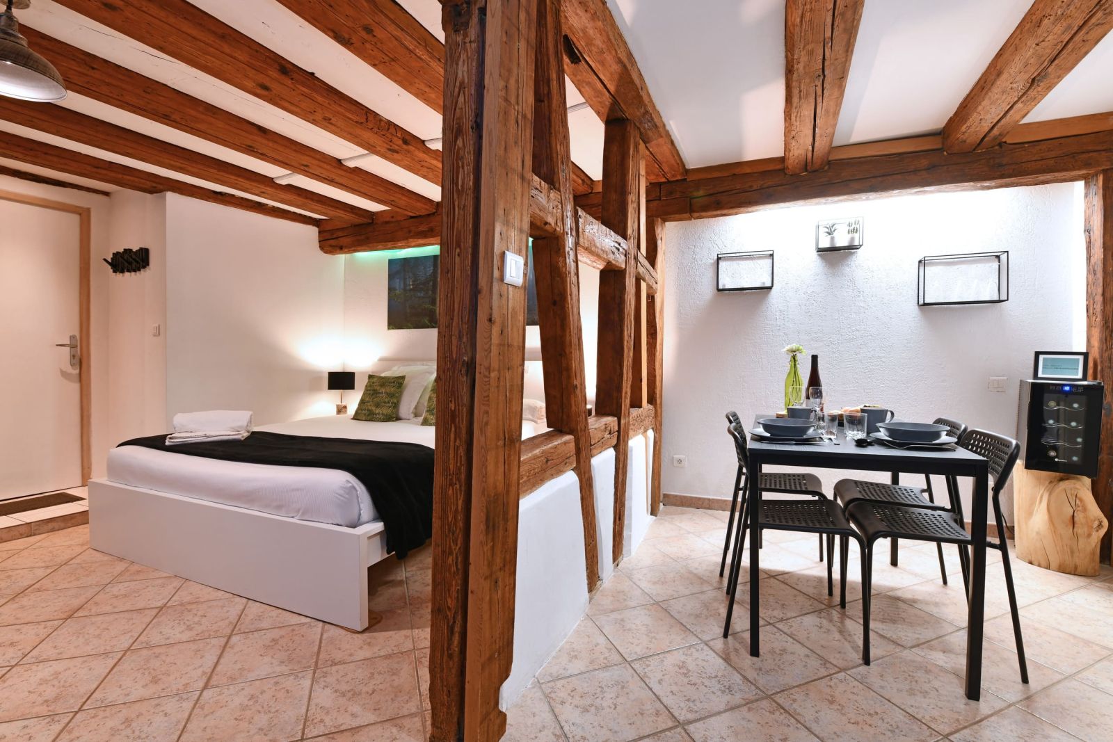 Le studio Zen, situé au premier étage d’une maison alsacienne rénovée, est idéal pour deux personnes ou un couple avec un bébé. Entièrement équipé, il permet de cuisiner sur place. Niché dans une cour intérieure, il offre un environnement calme tout en étant à quelques pas de l’animation du centre-ville. Il suffit de franchir la porte d’entrée pour se retrouver en plein cœur de Colmar. Profitez de la cour intérieure commune, idéale pour manger dehors et ranger les vélos en toute sécurité